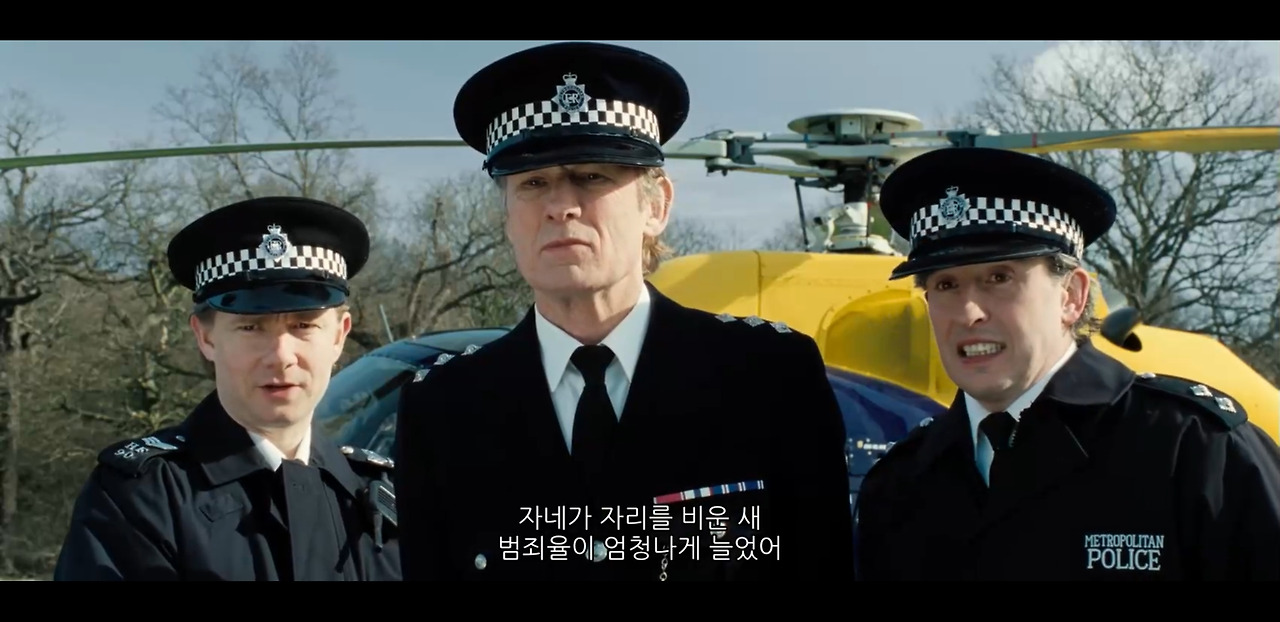 영화 '뜨거운 녀석들'에서 유능한 경찰 니콜라스는 런던에서 시골로 좌천당하는데 바로 동료들이 그 혼자 공을 세울까봐 두려워했기 때문이었다. 뻔뻔한 동료들은 범죄율이 다시 증가하자 그를 되찾으러 온다.