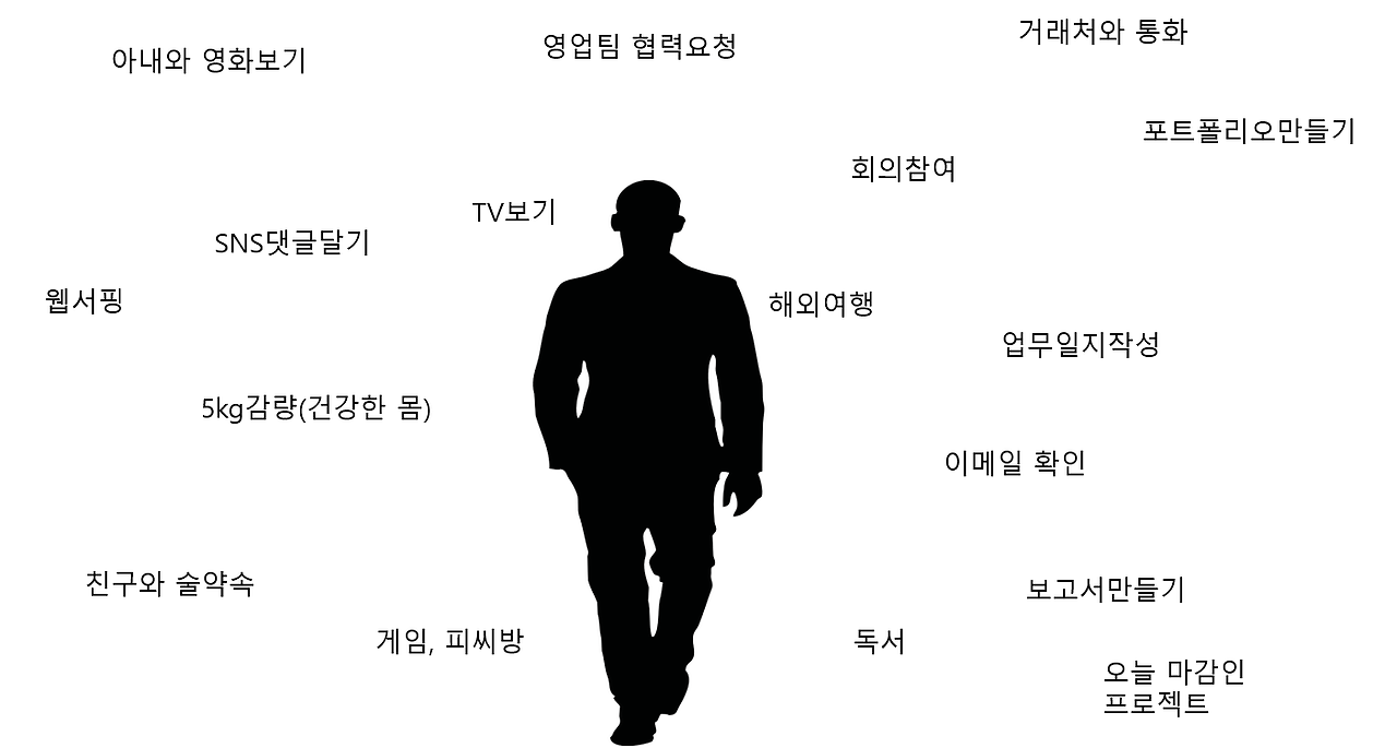 당신에게 위의 그림과 같은 일들이 주어졌다. 당신은 어떤 일을 먼저 처리하겠는가? 일의 순서를 차례대로 매겨 본다면?