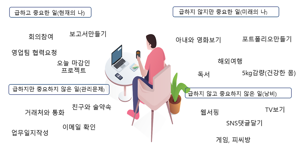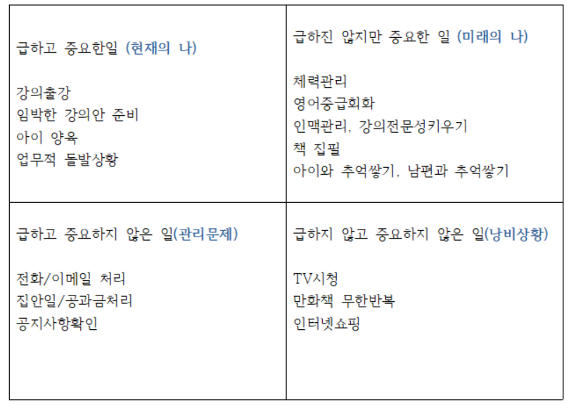 '시간관리매트릭스의 4사분면'