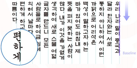 다시 돌아와서 정리하면 이런 겁니다. 세종은 뚜렷한 의도와 원칙을 가지고 한글을 만들었는데, 우리는 아무런 문제의식 없이 서양의 가로쓰기를 받아들여서 쓰고 있죠. 세로쓰기로 고안된 문자를 가로쓰기로 쓰니 라인이 망가집니다. 자연히 오리지널 문자보다 안 예쁠 수밖에 없습니다.