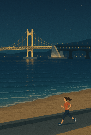 저는 주로 밤에 달리는데요, 그 시간의 광안대교는 정말 눈부시게 빛나요.