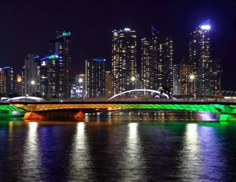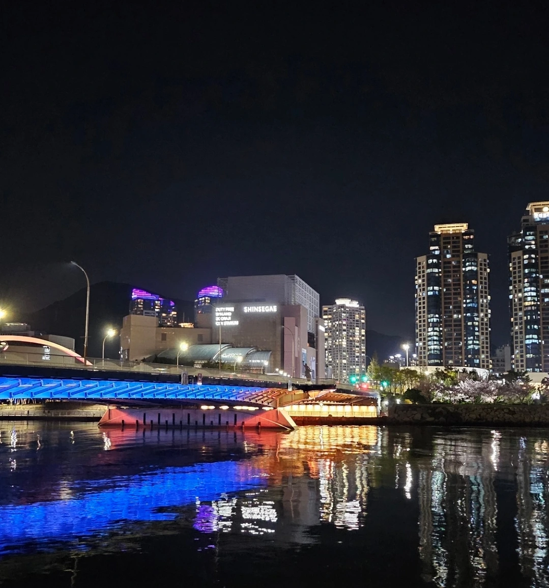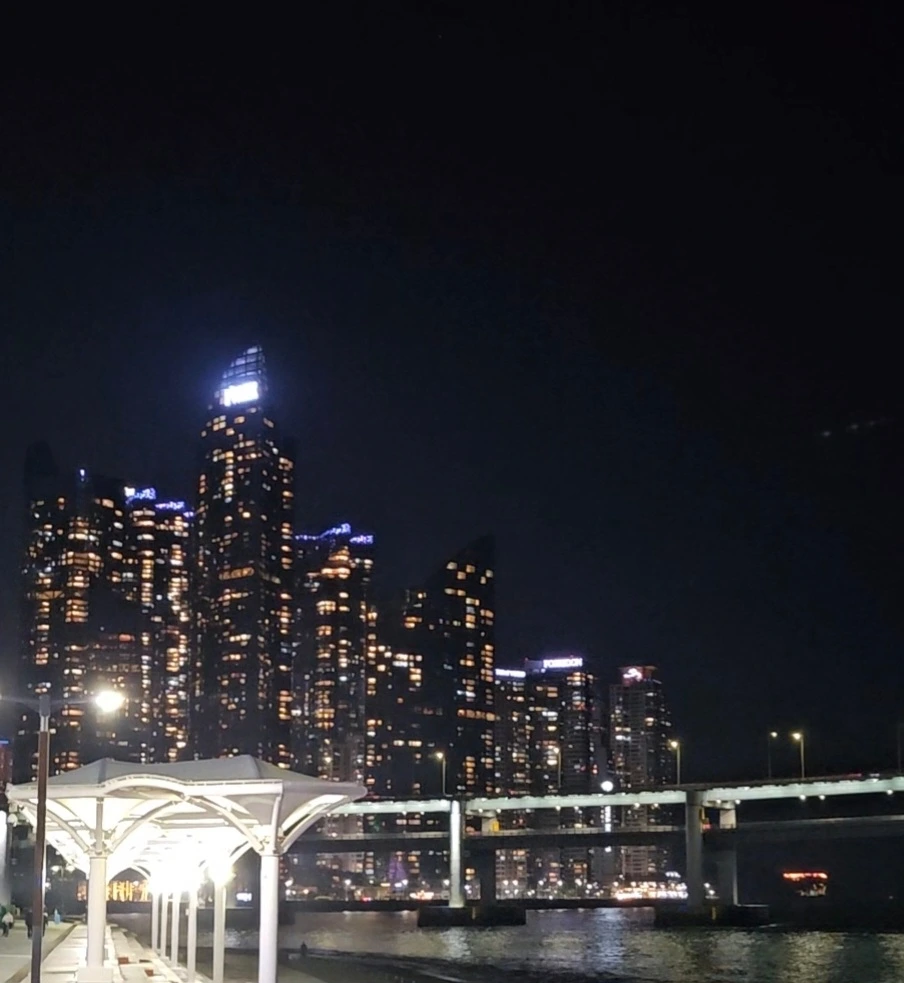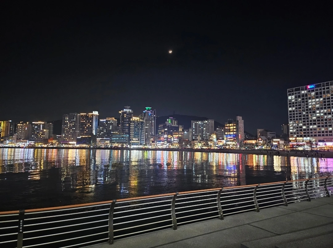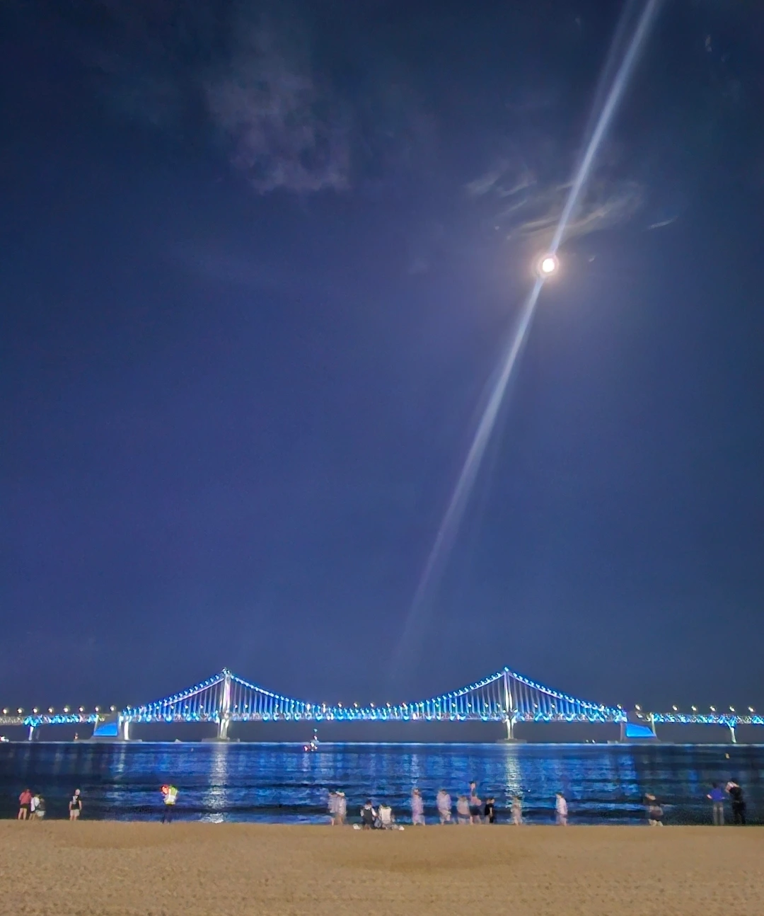 광안대교와 수변공원의 불빛이 어우러지는 순간에, 저도 같이 빛나는 기분이에요. 하이파이브!