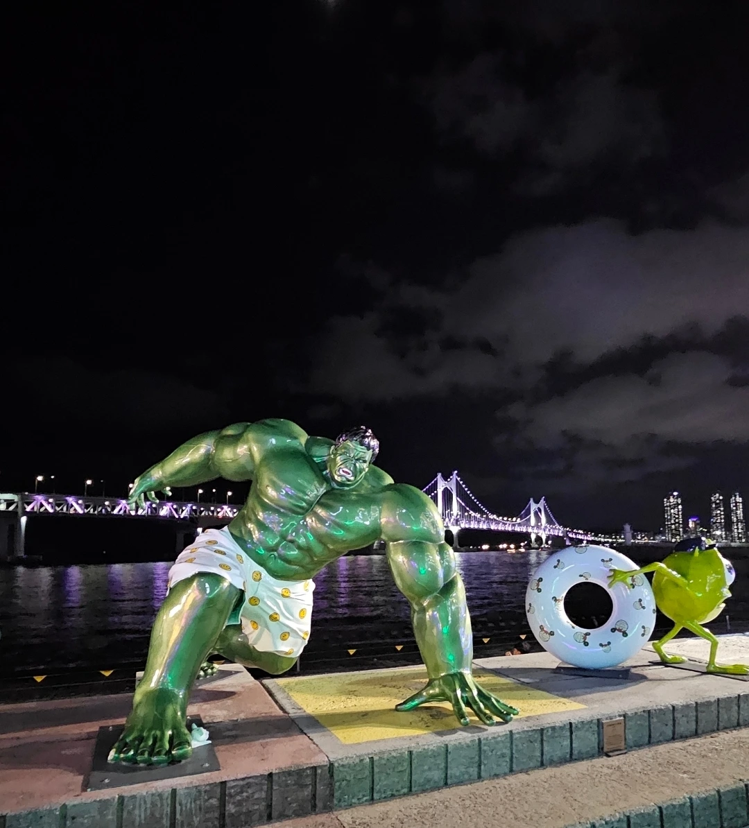 바다를 배경으로 마블의 헐크와, 제가 특히 좋아하는 몬스터 주식회사 ‘마이크’ 조형물을 만나요.