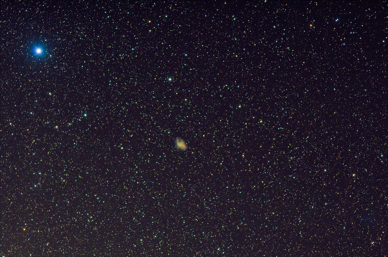 다시 은하로 돌아와서.. 이번 대상은 처녀자리에 있는 마카리안 체인이라고 불리는 은하단입니다. 가운데 우측 2개의 밝은 타원은하 (M84, M86)를 시작으로 몇몇 작게 보이는 은하들이 부드러운 곡선을 그립니다. 다양한 크기를 가진 여러 개의 은하들에 의해 지어진 은하들을 '마카리안 연쇄 은하' 혹은 '마카리안 체인'이라고 부릅니다. 1970년대 이 은하들을 발견한 아르메니아의 천문학자 이름을 땄습니다.