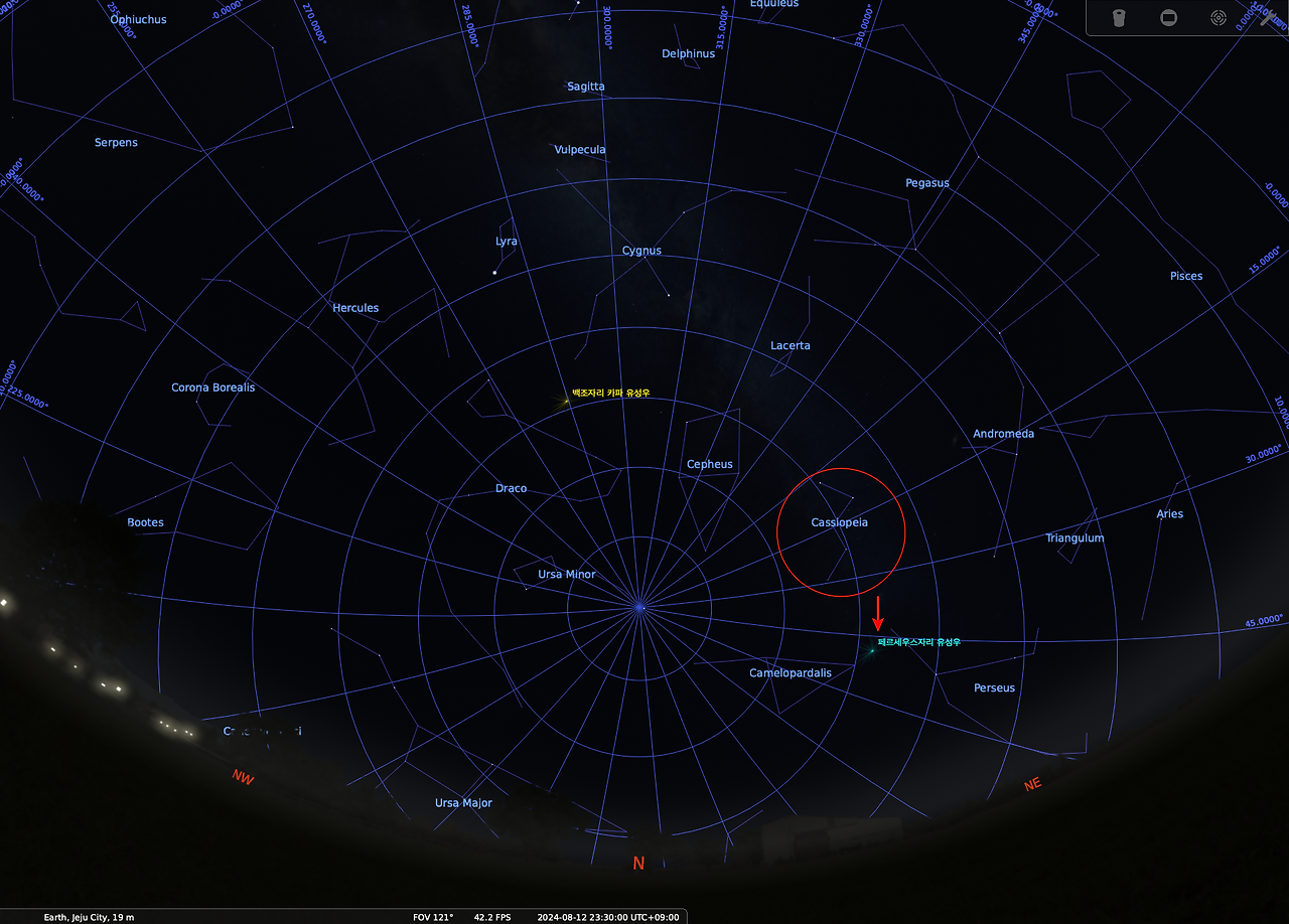 때마침 페르세우스 유성우가 극대 기는 지났지만 활동을 하고 있을 시기니 운이 좋다면 지나가는 유성을 보는 운도 따를 수 있을 거 같네요.