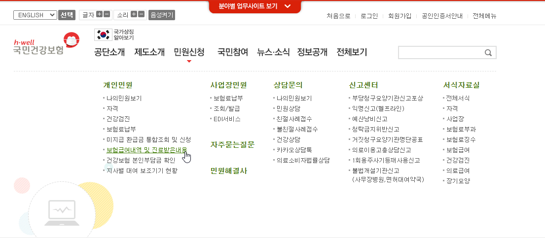 나는 의무에 충실하기로 했다. 정신과의 문턱을 넘지 못해 고통을 혼자 감당하는 환자들을 위해서라도 짚고 넘어가야 할 문제였다. 가입은 잠시 미뤘다. 보험가입 창을 잠시 닫고 국민건강보험공단 홈페이지에 접속했다. 안내에 따르면 최근 1년간의 기록은 국민건강보험공단 홈페이지에서 조회가 가능했다.