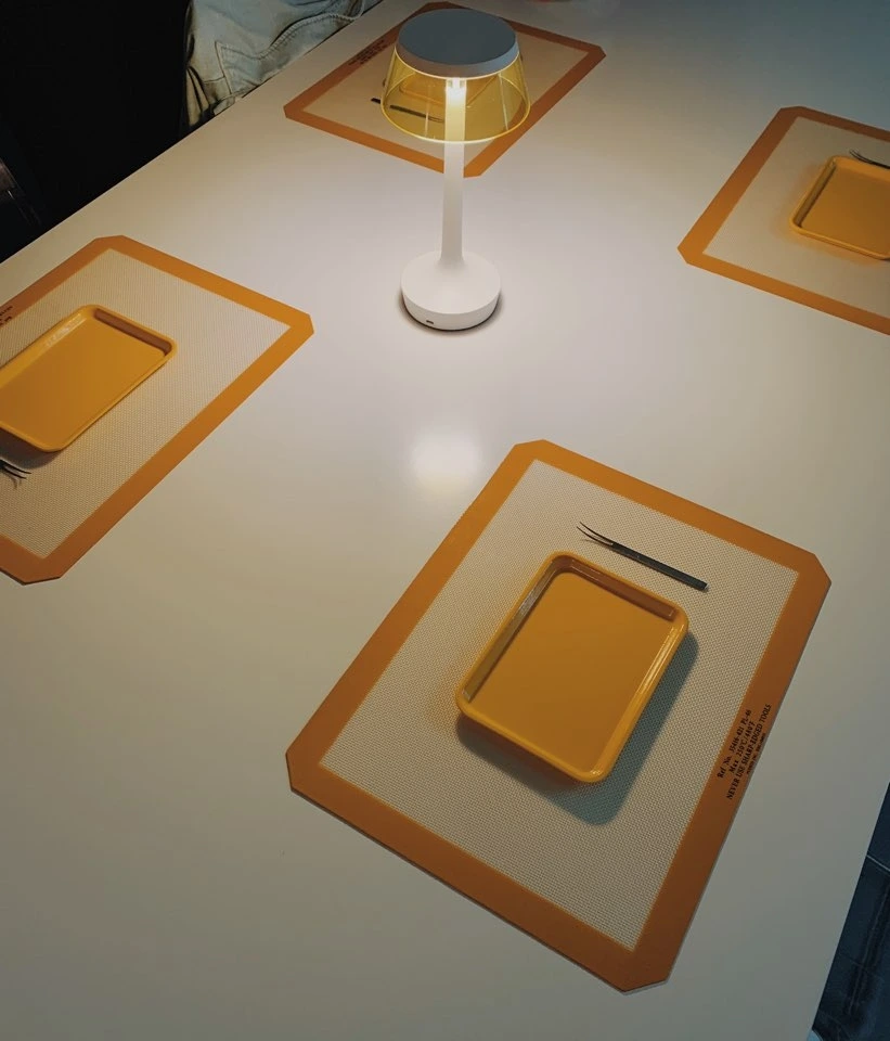 테이블 위로는 귀여운 느낌의 노란색 테이블 매트와 플레이트가 가지런히, lovely!! 뭔가 쿨한데 귀엽군.