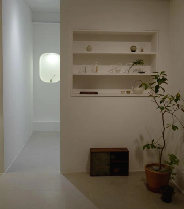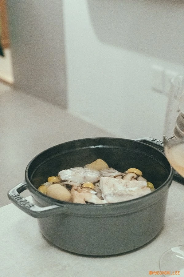 은은한 조명 속 새 하얀 테이블과 키친웨어는 소박하지만, 선명한 빛을 낸다.