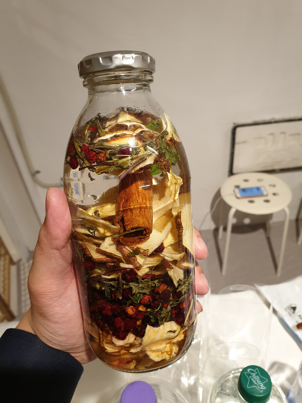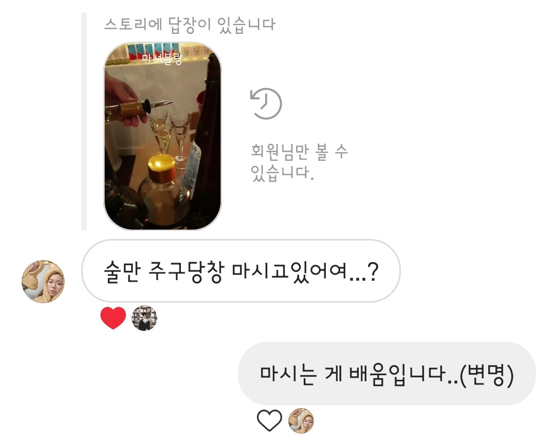 오른쪽 : 친구가 시작한 담금주 사업 / 왼쪽 : 변명 중인 나 (직업만족도가 꽤 높다. 술 좋아 사랑해 늘 짜릿해)