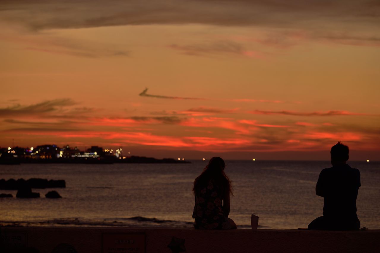 해지는 제주 바다만 봤다.