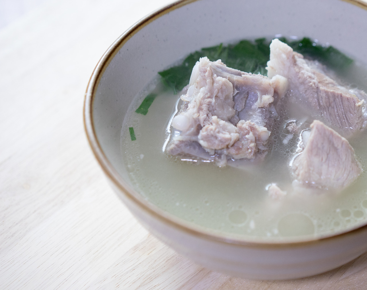 갈비를 차가운 물에 넣고 핏물을 뺀다. 그냥 해도 되지만 하는 내내 피가 굳어진 갈색의 거품을 걷어 내는 번잡함이 있다. 뜰망이나 수저로 거품을 걷어 내는 것보다는 핏물을 제대로 빼는 것이 요리를 하면서 왔다 갔다 안 해서 훨씬 수월하다. 핏물을 뺀 갈비를 냄비에 넣고 한소끔 끓인다. 많이 끓이면 안 된다. 첫 물은 핏물을 다시 빼내는 과정이기 때문이다. 뼈와 고기에서 맛 성분이 끓이는 만큼 빠져나올 수 있고, 끓인 만큼 맛에 있어서는 손해다. 첫 물을 버리고 물을 붓는다. 고기 나 냄비 벽에 붙은 찌꺼기를 깔끔하게 떼어 낸 다음 본격적으로 갈비탕을 끓인다.