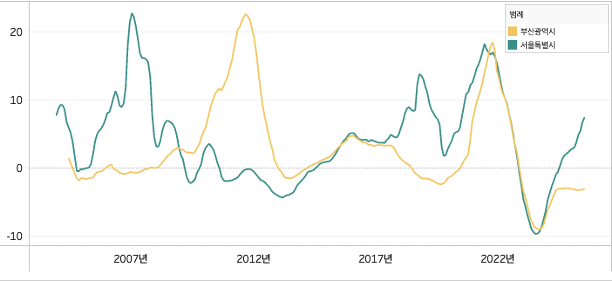 그럼에도 부동산 시장은 거대한 항공모함 같아서 분명한 큰 흐름이 존재한다. 상승장, 하락장, 침체장, 조정장으로 표현되는 사이클이 바로 그것이다. 그리고 그 흐름은 시장상황과 정부정책에 따라 지역별로 때로는 유사하게, 때로는 서로 다른 흐름을 보여왔다.