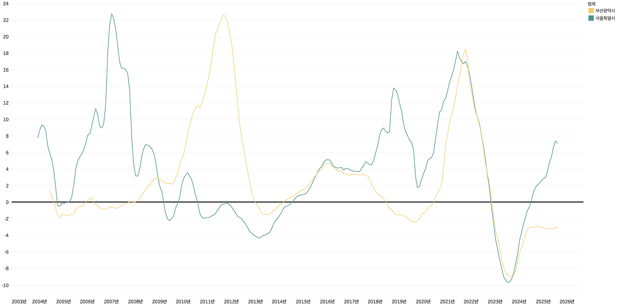 둘째, '투자자 플레이그라운드'로서의 위상이다. 부산은 규제차익과 가격 메리트를 노린 전국 자금의 이동에 따라 가격이 크게 움직이는 패턴을 보였다. 정책이 곧 매수·매도 시그널이 되는 독특한 시장이었다.