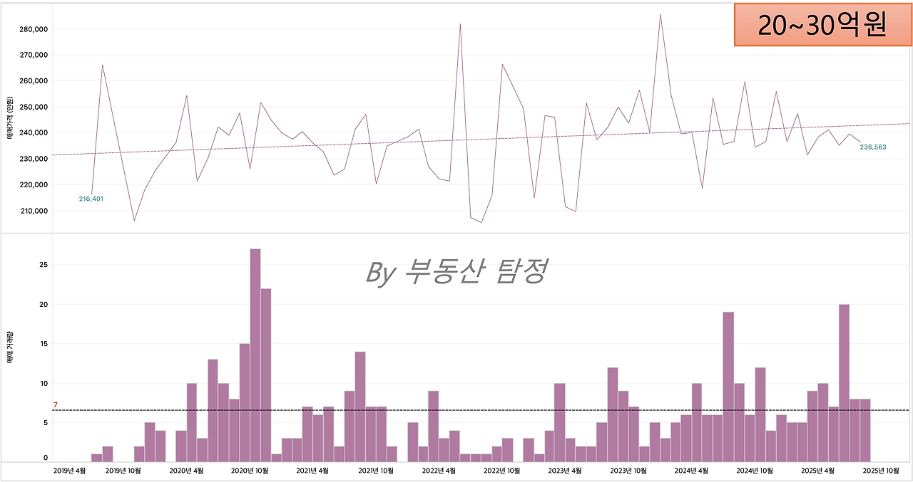 20~30억원 : 지방에서는 고가의 단지들로, 아직 회복되지 않았으며, 다른 가격대와는 다른 시장임.