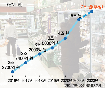 이런 변화가 2010년 7,700억 원 수준에 불과했던 HMR시장을 2022년 5조 원으로 성장시켰고, 2023년에는 무려 7조 원까지 확대된 것으로 예상하고 있다.