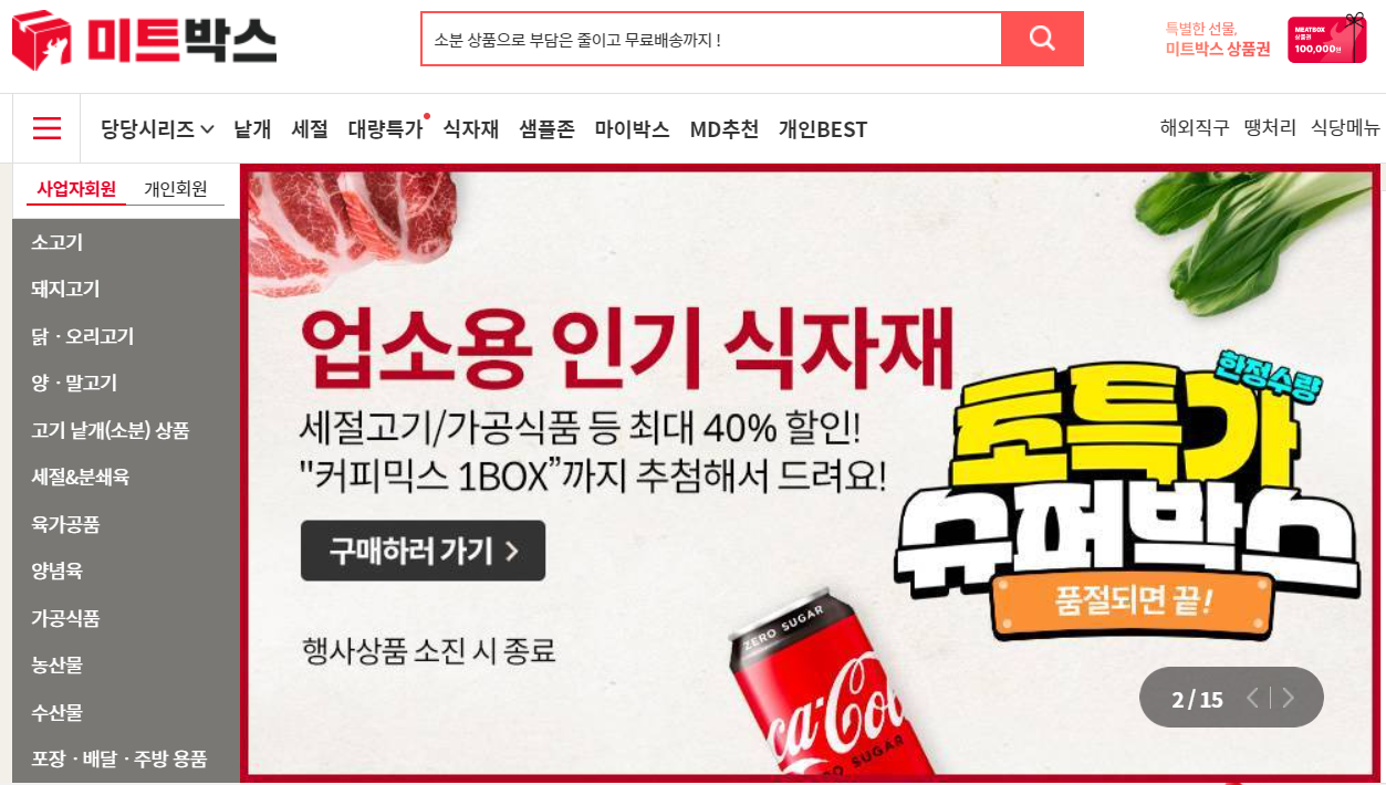 하지만, 미트박스는 다양한 상품구색과 해당 품목을 다음날 배송해 줄 수 있는 물류 등의 자신들만의 강점에 집중했다.
