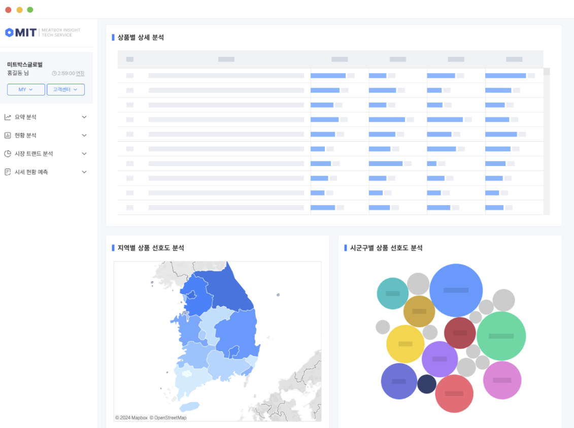 최근에는 미트박스 운영을 통해 모은 시세와 시황, 판매 데이터를 활용한 축산물 도매 시세와 시황 리포트 등을 담은 미트박스 종합지수를 개발했다. 10년간 미트박스를 운영하면서 쌓인 데이터로 만든 지수다. 이를 기반으로 축산시장 예측 및 고객분석 플랫폼 M.I.T(Meatbox Insight Tech-service)를 출시했다.