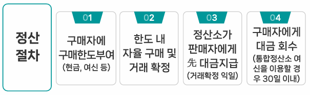 정산방식에 있어서도 판매자에게 거래대금을 선지급하고 구매자에게 후취하는 정산소 여신 운영을 통해 거래 주체들에게 자금의 현금흐름(Cash Flow)에 도움을 준다.