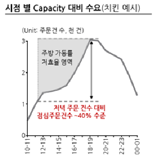 가장 현실적 접근을 위해 실제 외식점포 내 주방의 생산성을 확인 후, 여유 수용성을 바탕으로 사업 모델 설계를 했다. 일반적으로 대다수의 중소형 식당은 메뉴 특성에 따른 집중 주문 시간대가 상이하여 점포 내 운영 비효율성이 존재하고 있다.