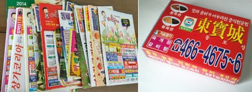 예를 들면 전단지, 배달책자, 중국집의 메뉴 및 연락처를 볼 수 있는 성냥, 이쑤시개 등이 있었다.