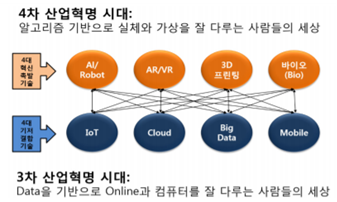 이를 바탕으로 디지털, 물리적, 생물학적 기존 영역의 경계가 사라지면서 초연결, 초지능, 초융합이 이루어지는 기술적 혁명이 일어나는 과정이다.