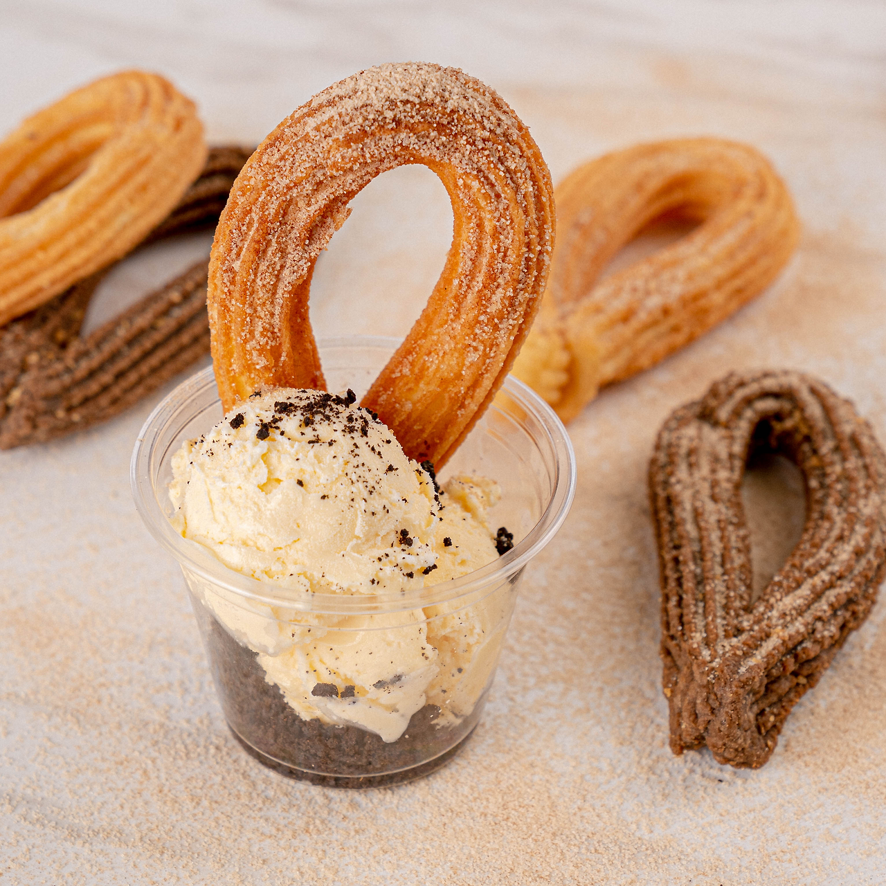 부드러운 소프트아이스크림과 어울리는 바삭한 츄러스, 혹은 맛을 더욱 풍부하게 만들어줄 과자와 시럽.