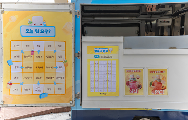 브랜드 캐릭터를 이용한 랩핑 디자인을 통해 현장 분위기를 더욱 화사하게 꾸미고, 시선을 집중시키는 효과도 얻을 수 있어요. MZ세대 학생들을 타겟한 프로모션이었던 만큼, 캐릭터의 귀여움으로 학생들의 참여율을 더욱 이끌어낼 수 있었답니다.