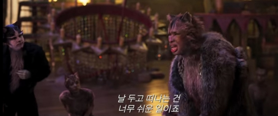 영화 캣츠는 뮤지컬 영화임에도 불구하고 신나고 발랄한 그 분위기가 뭔가 제대로 전해지지 않는다는 아쉬움이 있다. 영화관의 음향 시스템이 안 좋은 것인지 음악 소리가 생생하고 비트 있게 출력되지 않아 많이 아쉬웠다.