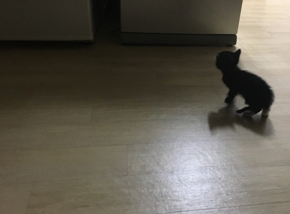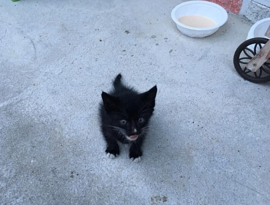 2018년 9월 어느 날, 마당에 손 뼘만한 검은색 고양이가 나타났다.