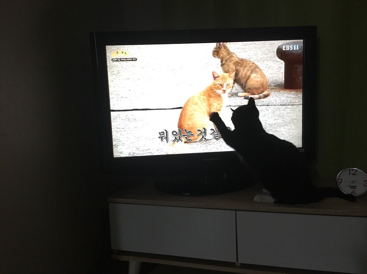 텔레비전에 나온 스타 고양이랑도 놀았다. 그러다 포근한 공간이 필요하면 쇼핑 백안으로 쏘옥 들어갔다.