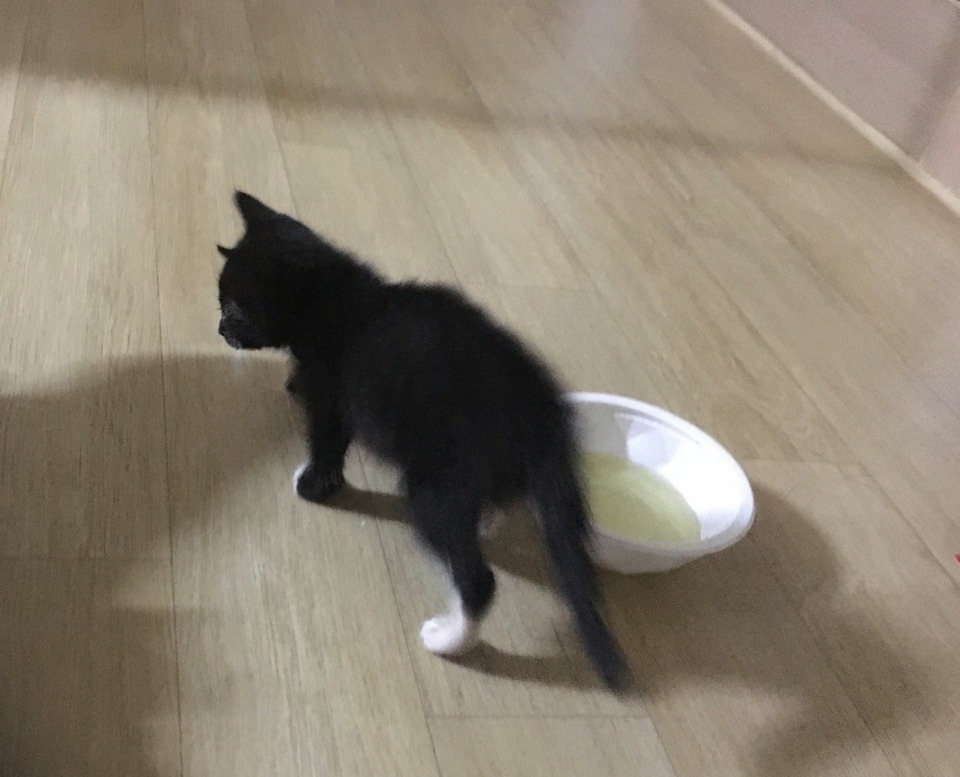새끼 고양이 사료를 물에 불려서 줬다.