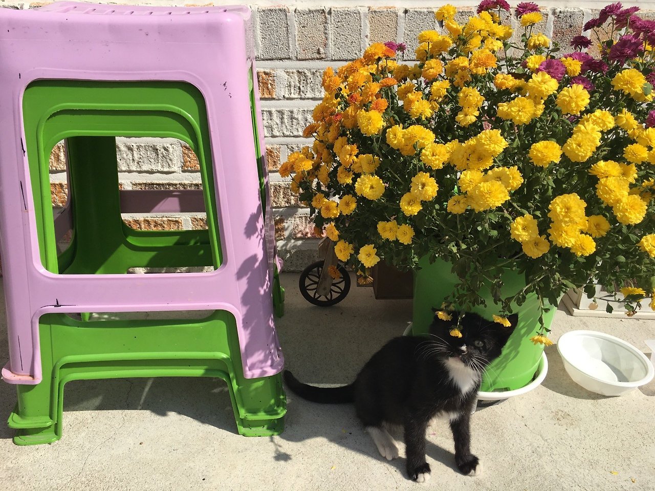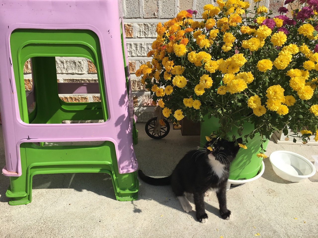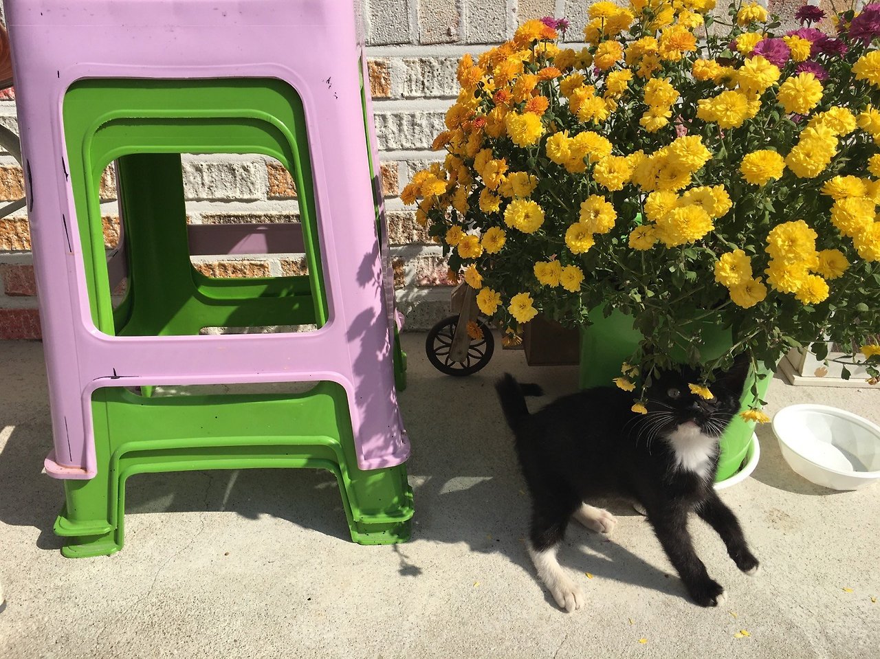 방에 들어 온 뽁이는 먹고 자고 관찰한다. 그리고 꽃이 있는 마당으로 고고.