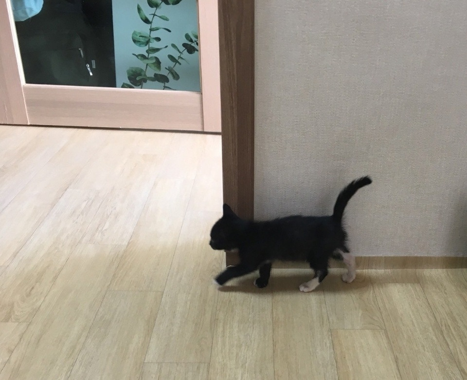 현관문을 열고 나가면 조그만 고양이가 집에서 나와 총총 내게 달려온다.