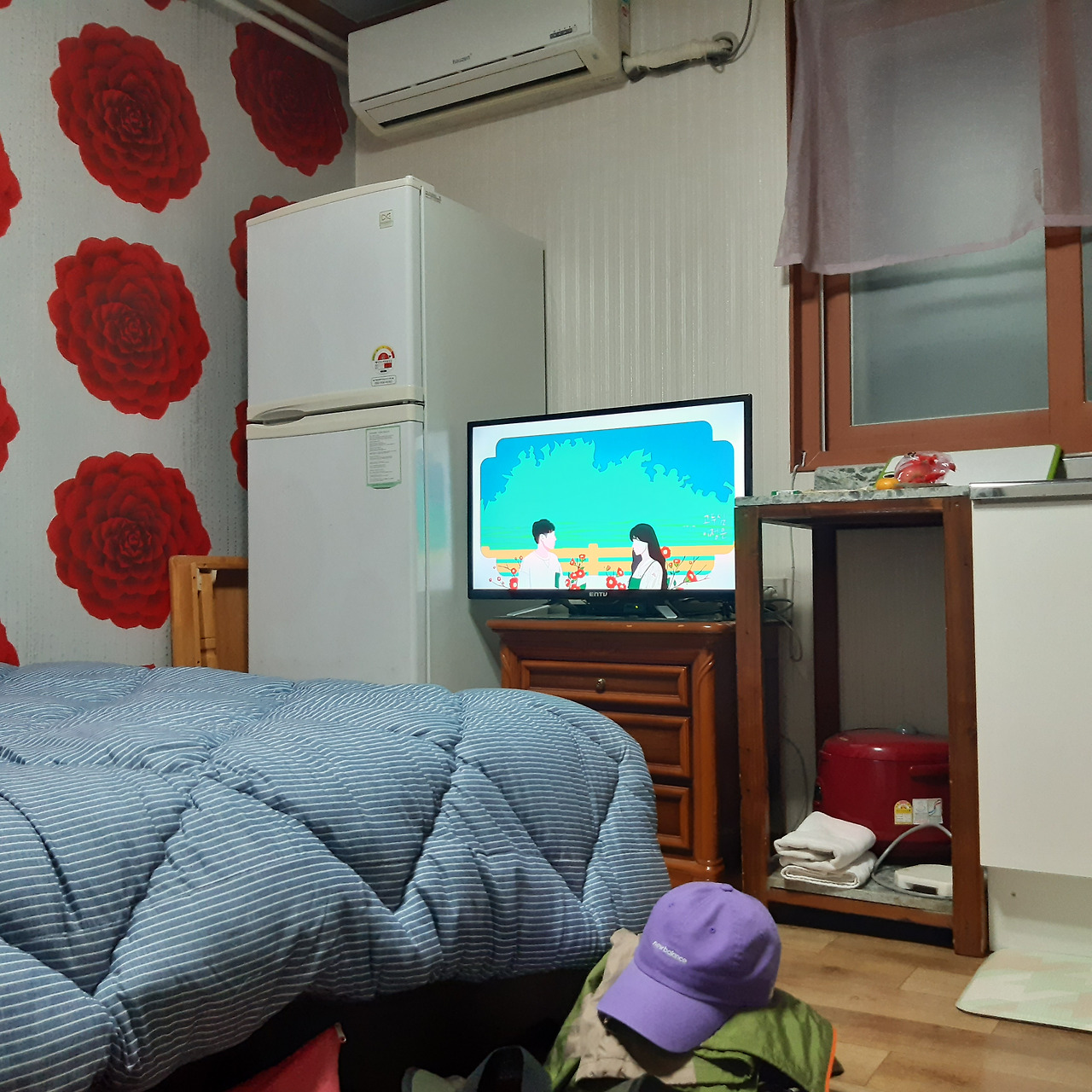 방에 들어갔더니 벽지 위 빨간 동백꽃들이 반겨준다. 티비를 틀었더니 동백꽃 필 무렵이 한다.