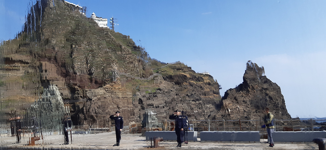 독도를 지키는 늠름한 독도 경비대원 그리고 동도와 서도, 촛대바위, 삼형제굴 바위를 눈에 담는다.