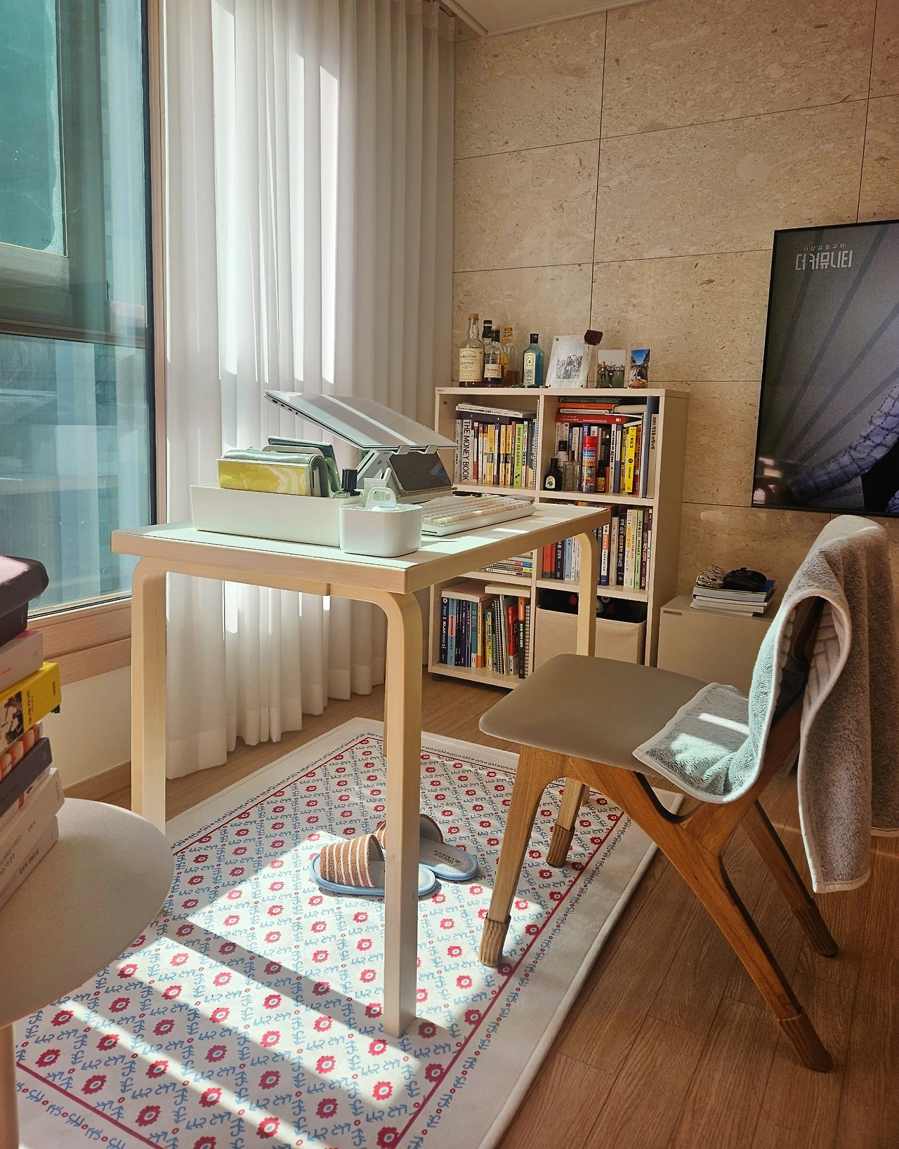 가구는 천천히 고를수록 후회가 없었다. 이사 온 지 1년이 훌쩍 넘은 지금, 나는 거실 창가에 놓을 아르텍 테이블을 샀다. 전자기기를 꺼내 소파 테이블이나 식탁에 올려놓고 사용하다 보니 매번 번거로웠기 때문이다. 거실의 베란다 확장 공간이 항상 비어 있었는데 그곳에 테이블을 놓고 앉아서 책도 읽고 컴퓨터도 하고 바깥 풍경을 보며 커피도 마시고 있다. 내 라이프스타일을 깨달을 때, 빈 공간을 가장 효율적으로 활용할 아이디어가 생길 때 가구를 골랐더니 만족도가 높다.