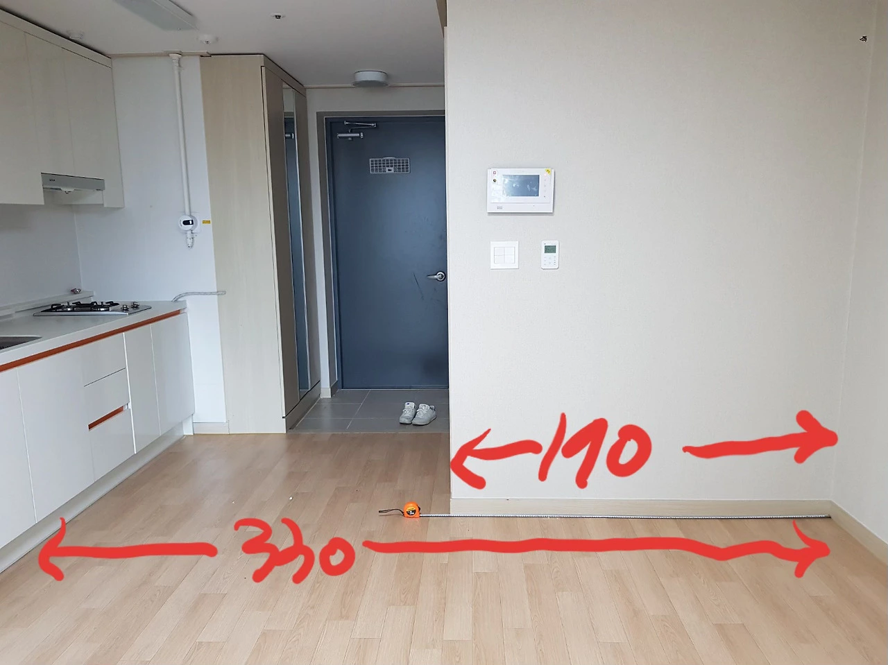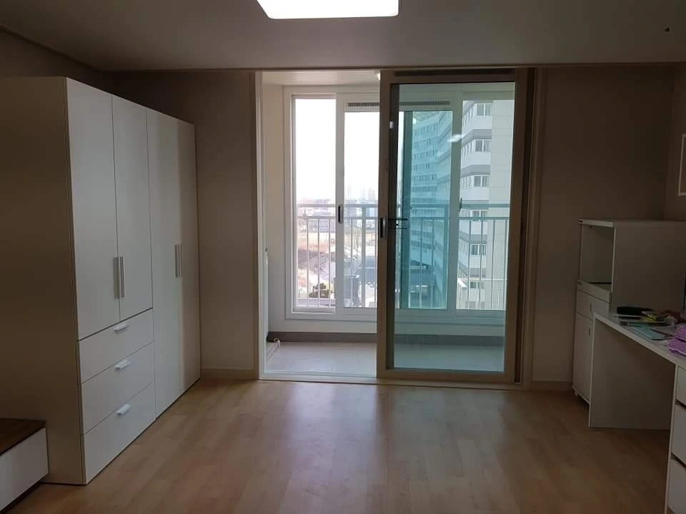 행복주택 사진. 책상과 싱크대, 미니 냉장고만 옵션으로 들어가 있었고 나머지 가구들은 직접 구입했다.