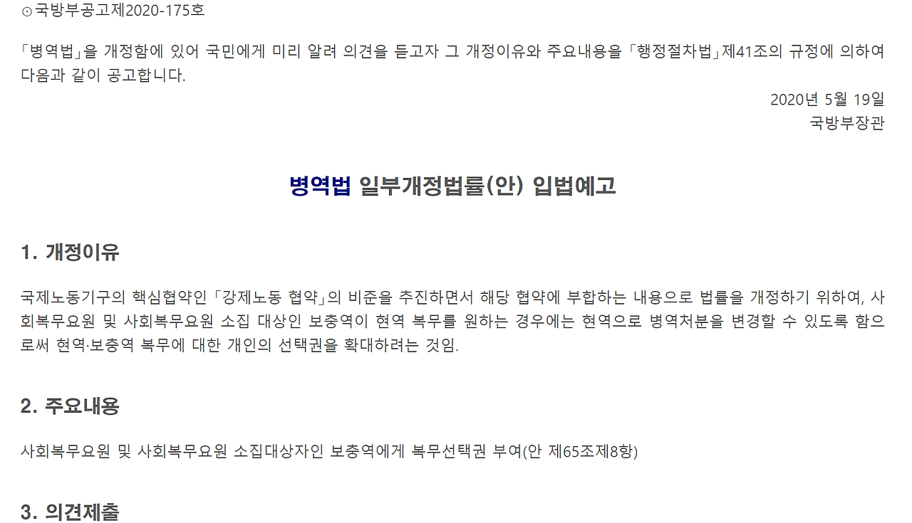 병역법 일부개정법률(안) 입법예고에 대한 반대의견서