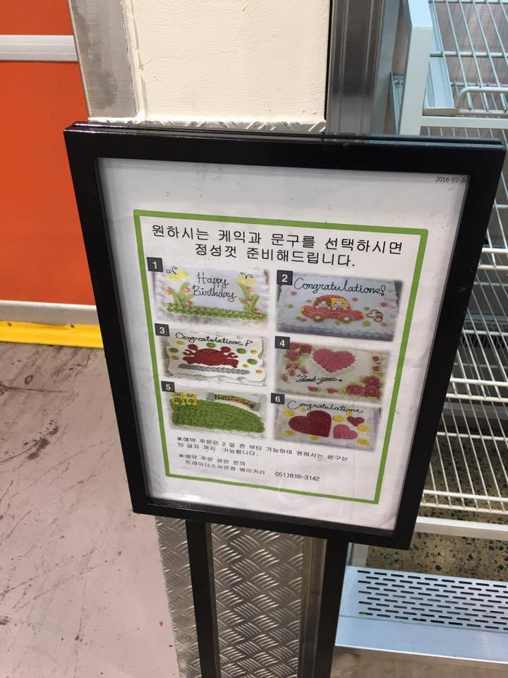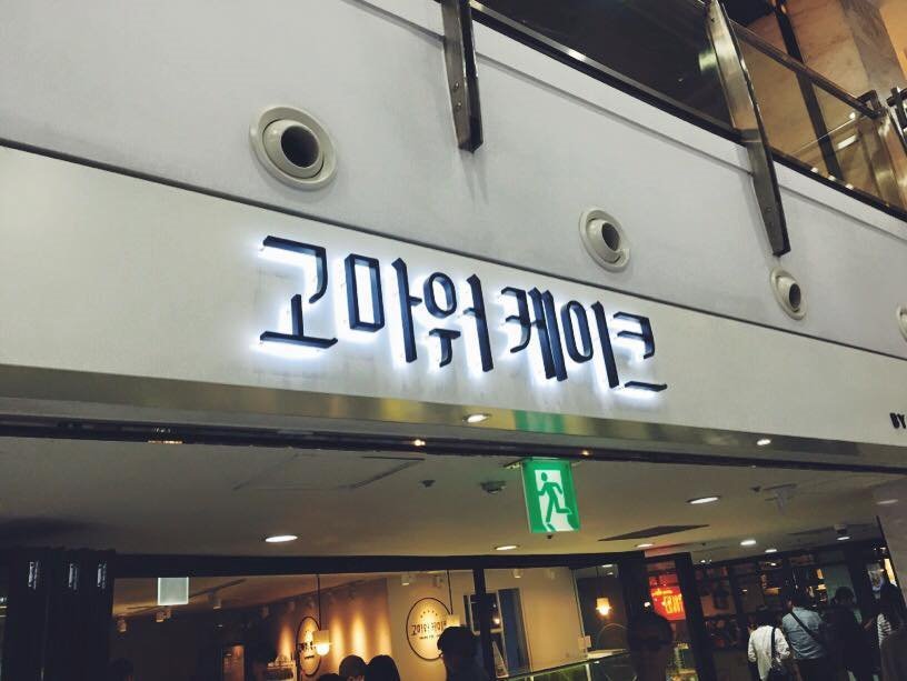 고마워 케이크는 간판은 되게 이쁜데, 옆에 붙어있는 포스터에는 굴림체를 뙇!