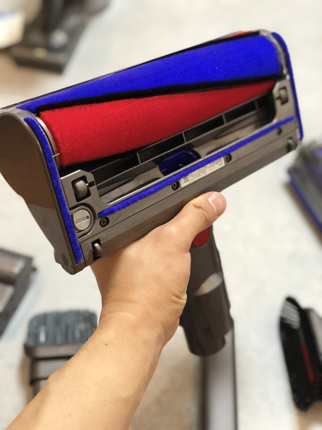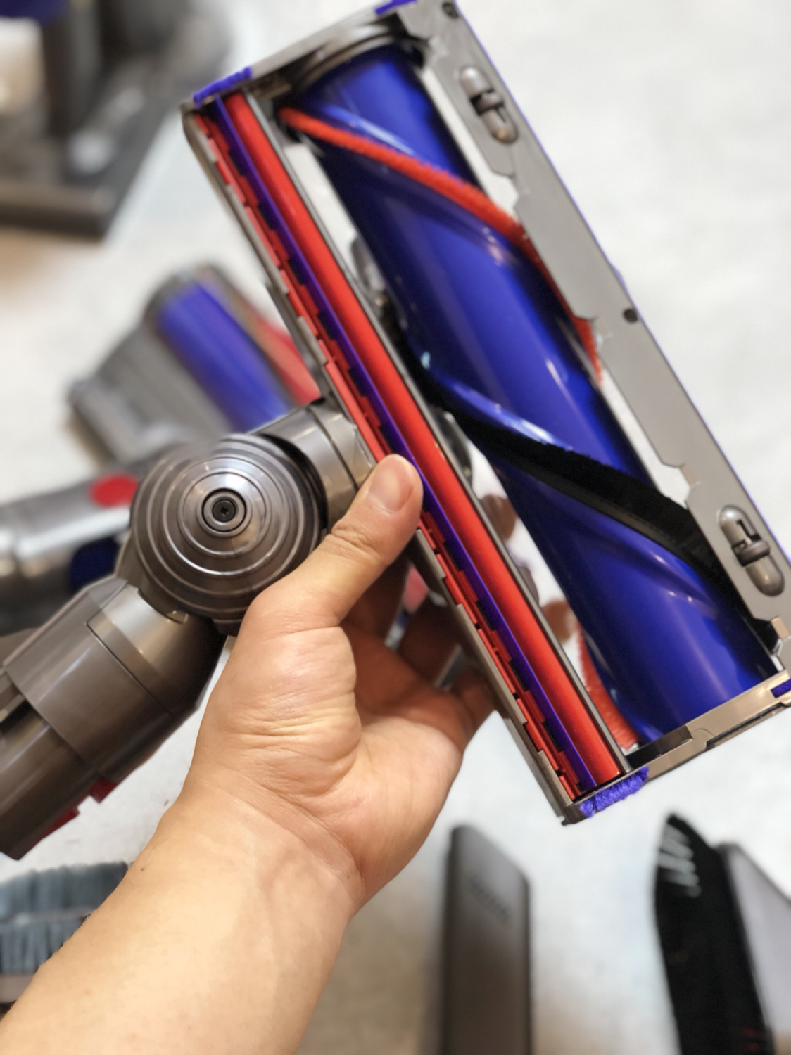 카페트와 같은 뻣뻣한 곳(?)을 청소할때 쓰는 툴, 이 툴은 머리카락이 엉키기도 한다.