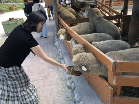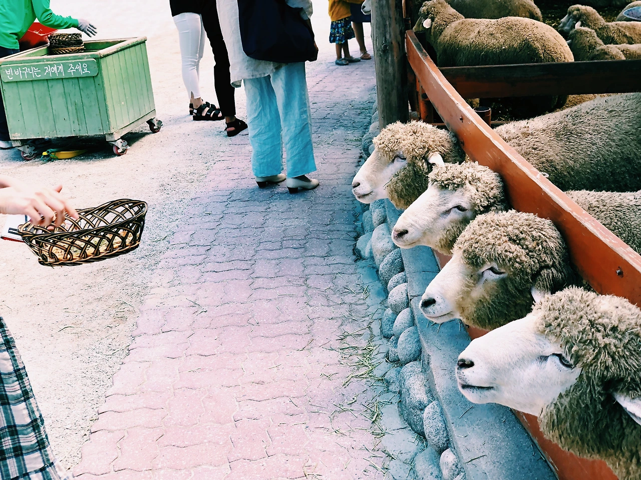 산책로를 따라 걷다 보면, 여러개의 방목장을 볼 수 있고, 마지막에 내려오면 양들에게 건초를 줄 수 있는 체험 장소가 있다. 어린이들을 위한 이벤트인것 같아서, 할까말까 고민하다가 체험을 해보았는데 정말 하기를 잘했다.