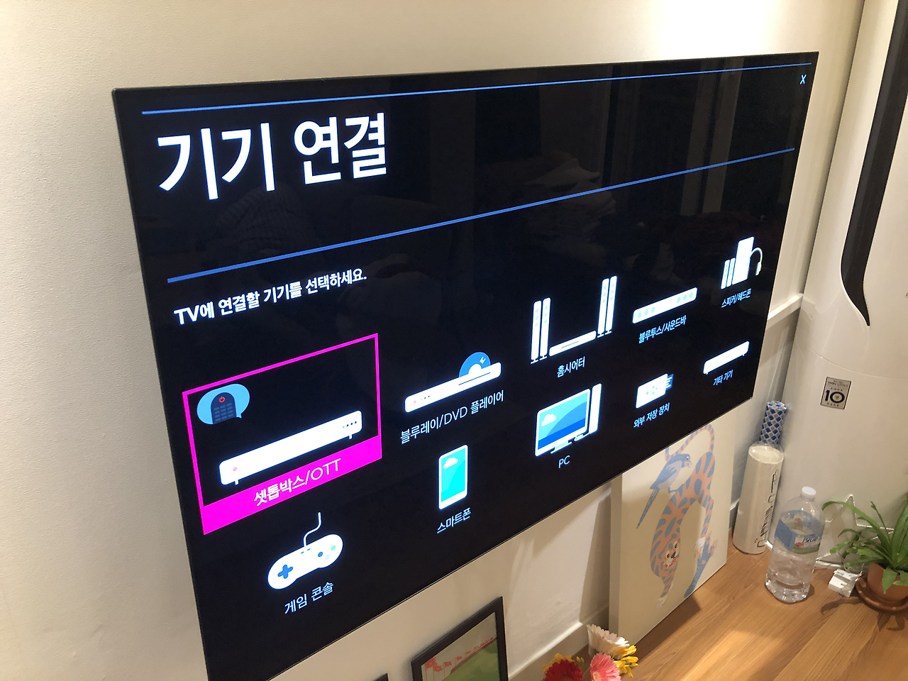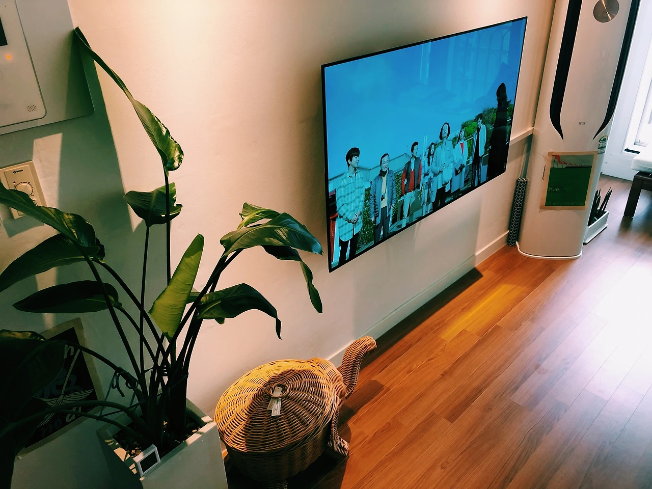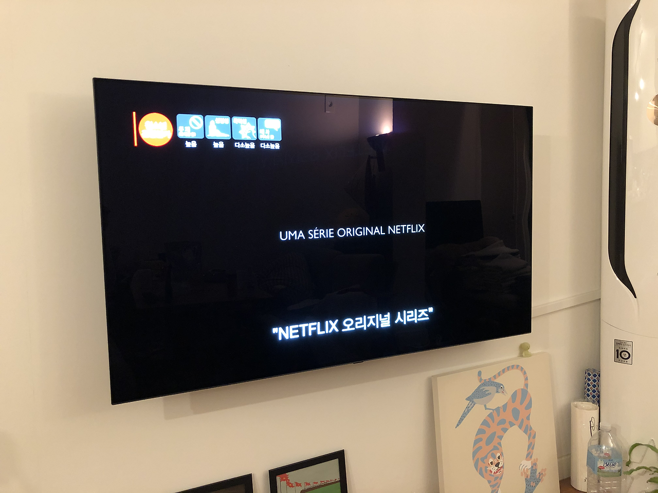 스탠드 방식 텔레비전을 사용할 때, 티브이 장식장이 너무 거추장스러워서 이번에는 벽걸이 타입으로 도전했다. 추가 비용을 지불하면, 티브이 뒤에 iptv 셋톱박스랑 공유기 등을 붙여주신다. (우리 집에는 필립스 휴 허브 등등 숨겨야 할게 너무 많아서, 추가 비용을 지불해야 했다.)