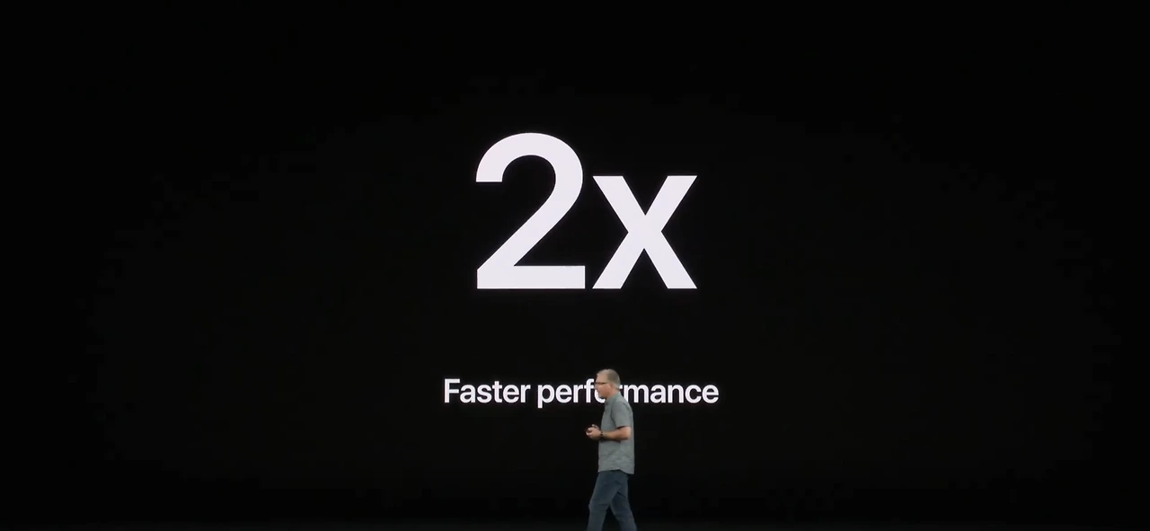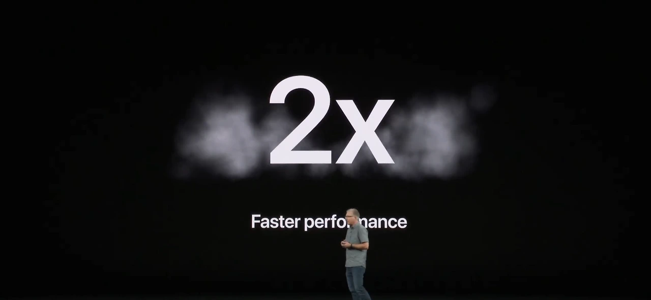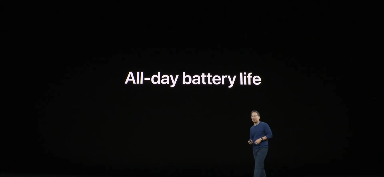 애플은 이벤트에서 각 제품이 소개를 마친 뒤에 마지막 슬라이드에 간략하게 이 제품의 성능에 대해 텍스트로 죽 늘어놓는 방식을 취하는데 이번에는 좀 더 특별한 방식을 택했다.
