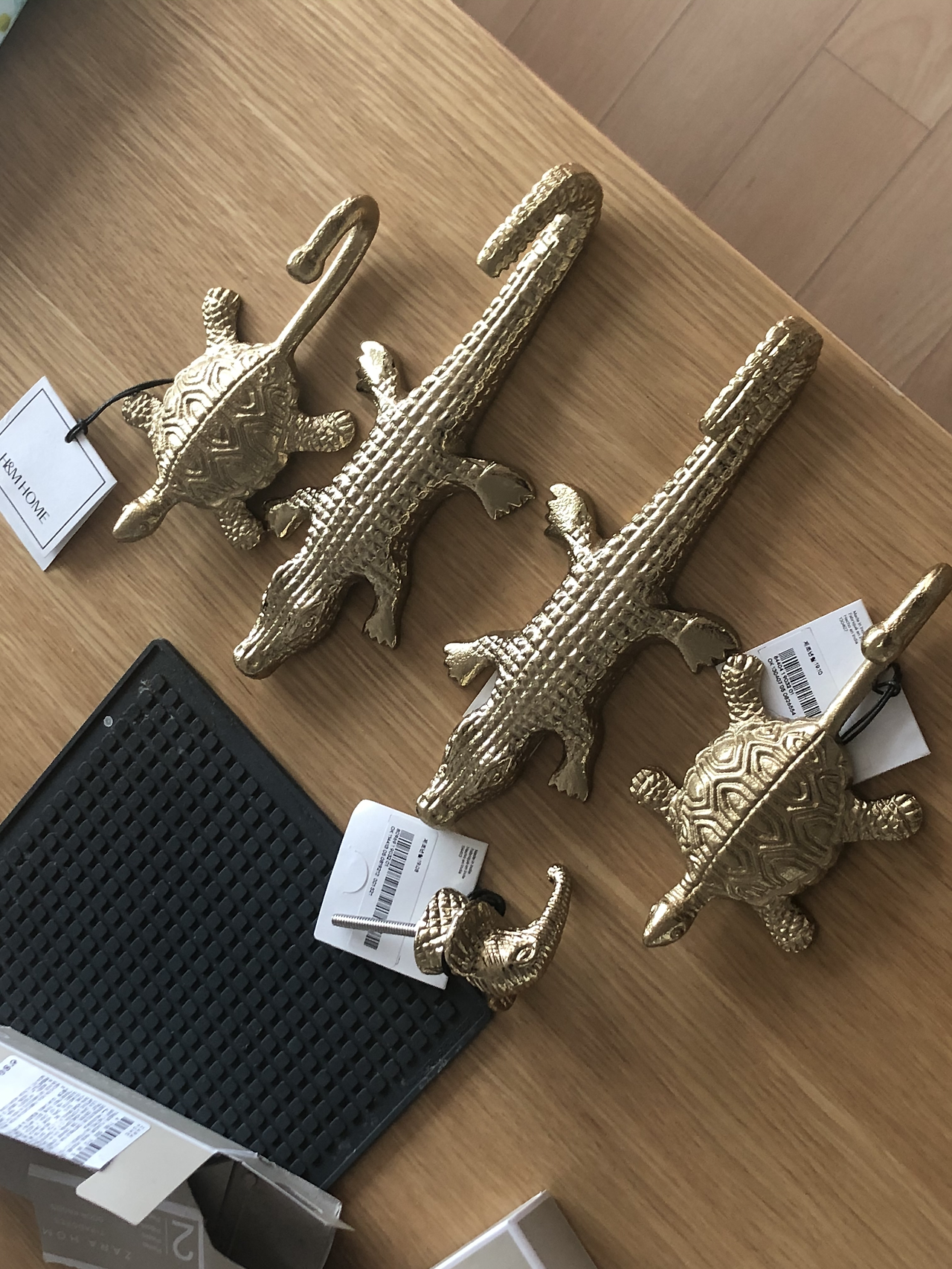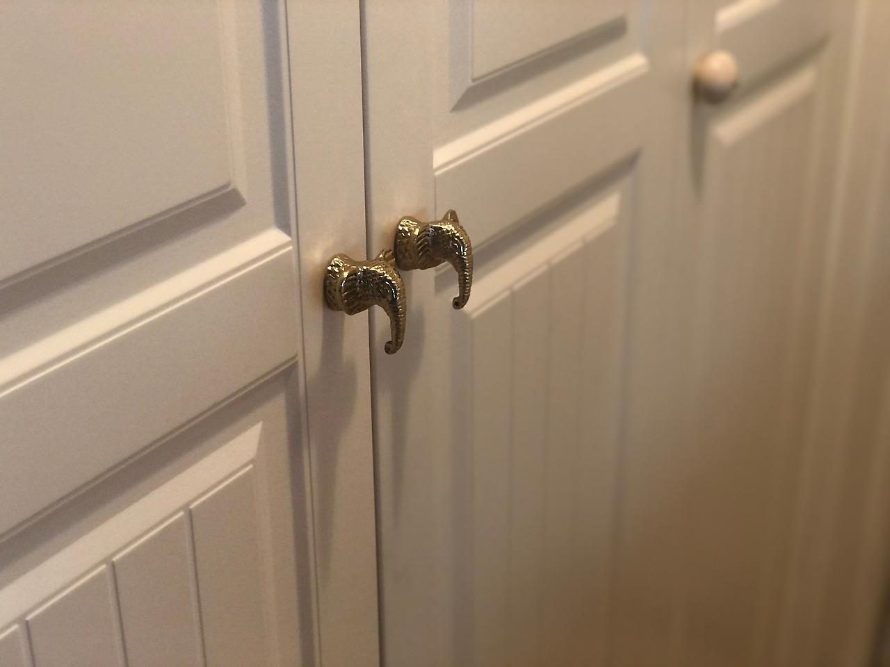 h&m home에서 사 온 코끼리 장신구를 활용하여, 문고리를 교체해보았다! (저 멀리 보이는 동그라미 문고리도 자라 홈에서 구매한 제품)