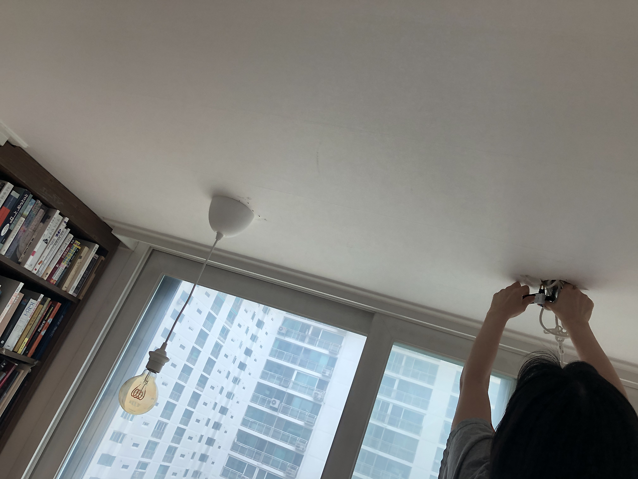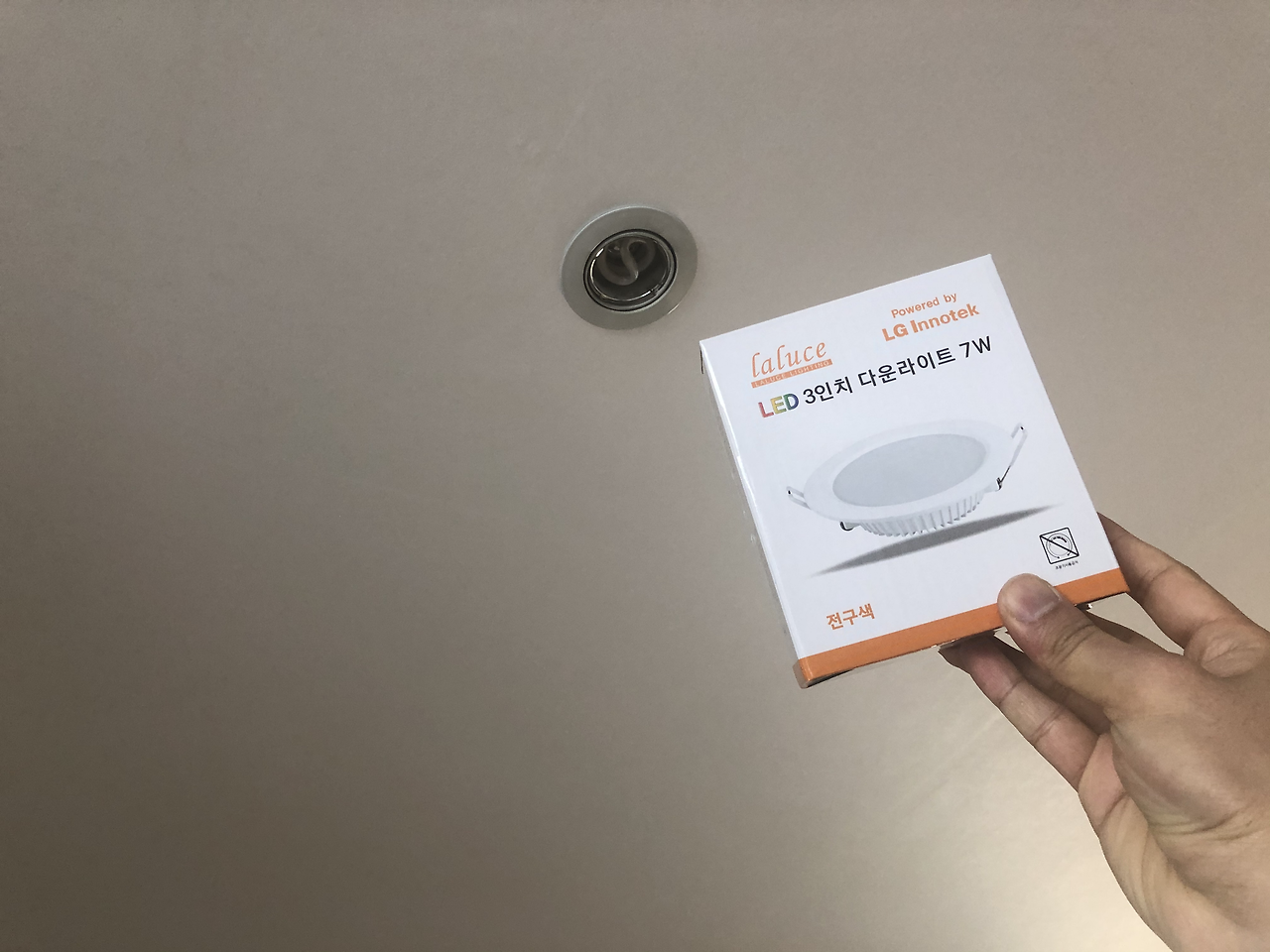 이번에도 전구색 조명 그리고 LED조명으로 교체하려고 만반의 준비를 다했건만, 아뿔싸, 천장 등이 매립등이라 설치가 매우 어렵다. 매립등은 또 형광등이라 완전 똥 흰 조명이다 아뿔싸....