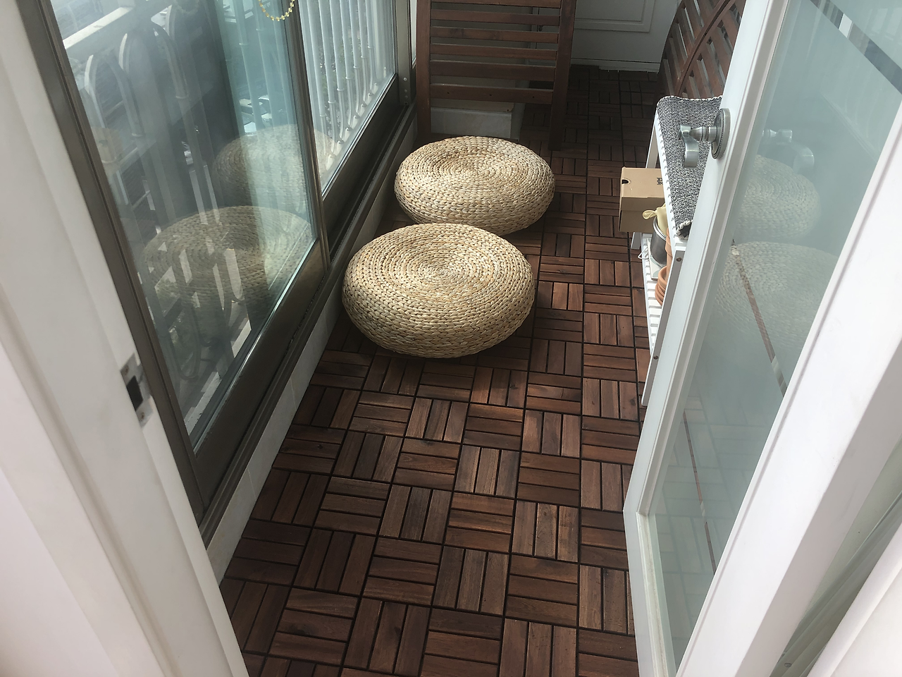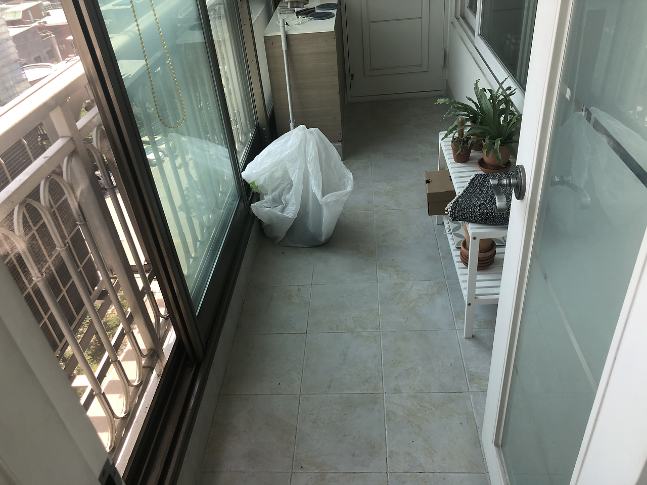 네 번째 관문은 이케아 룬넨 데크! 이미 많은 분들이 깔아 두었지만, 이 전집은 타일이 다 새 거여서 깔 필요가 없었다. 그런데 드디어!! (?) 이 룬넨 데크를 나도 깔아볼 기회가 왔다!! 먼저 베란다를 깨끗하게 치우고, 샤샤샥 룬넨 데크를 설치했다.