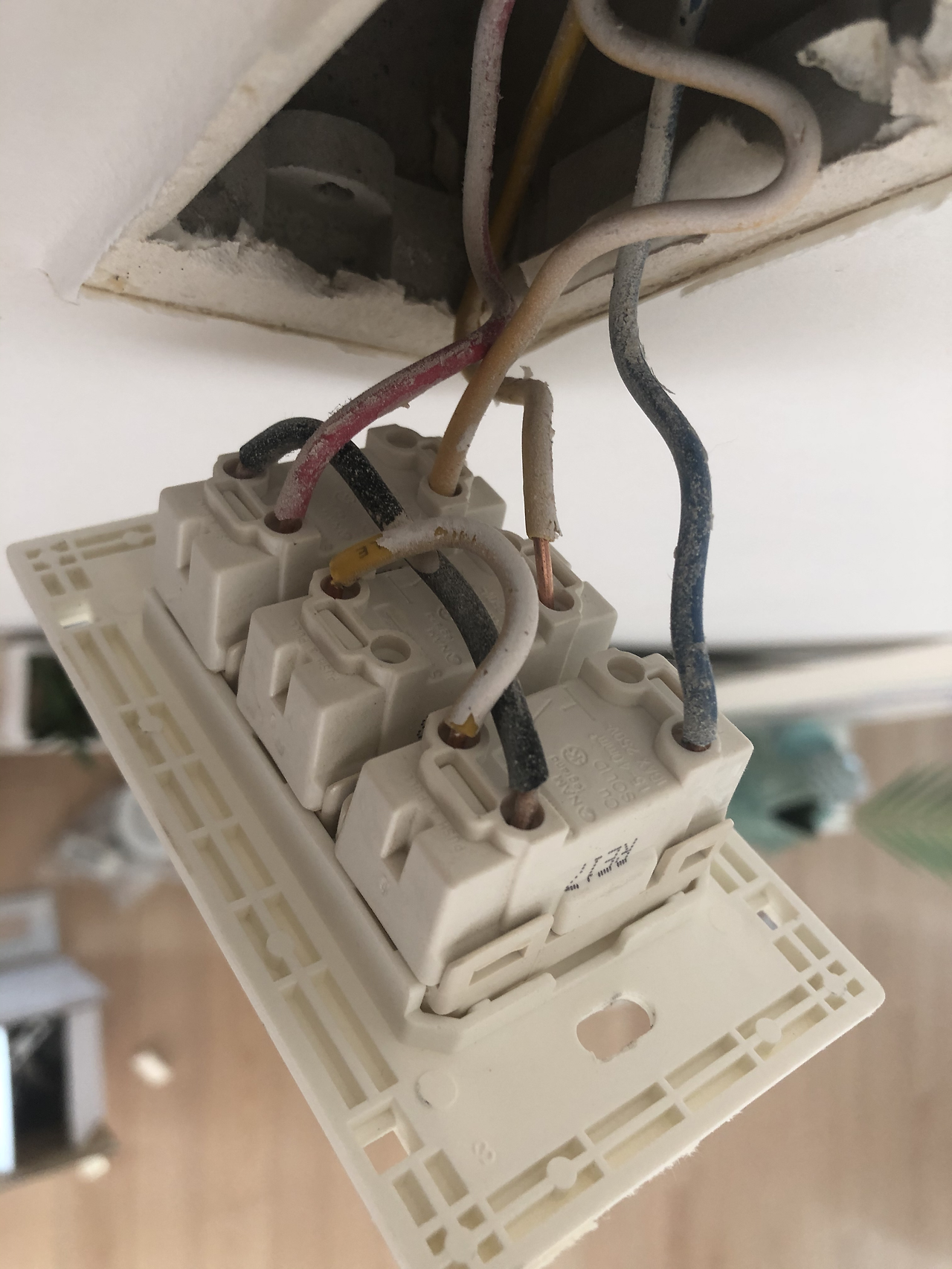 스위치 교체하는 방법은 간단하다! 먼저 두꺼비집을 내리고, 기존 스위치를 해제하면 나오는 전선들을 그대로! 똑같이! 새 스위치 뒷면에 그대로! 똑같이 맵핑(?)해주면 간단하게 끝난다.
