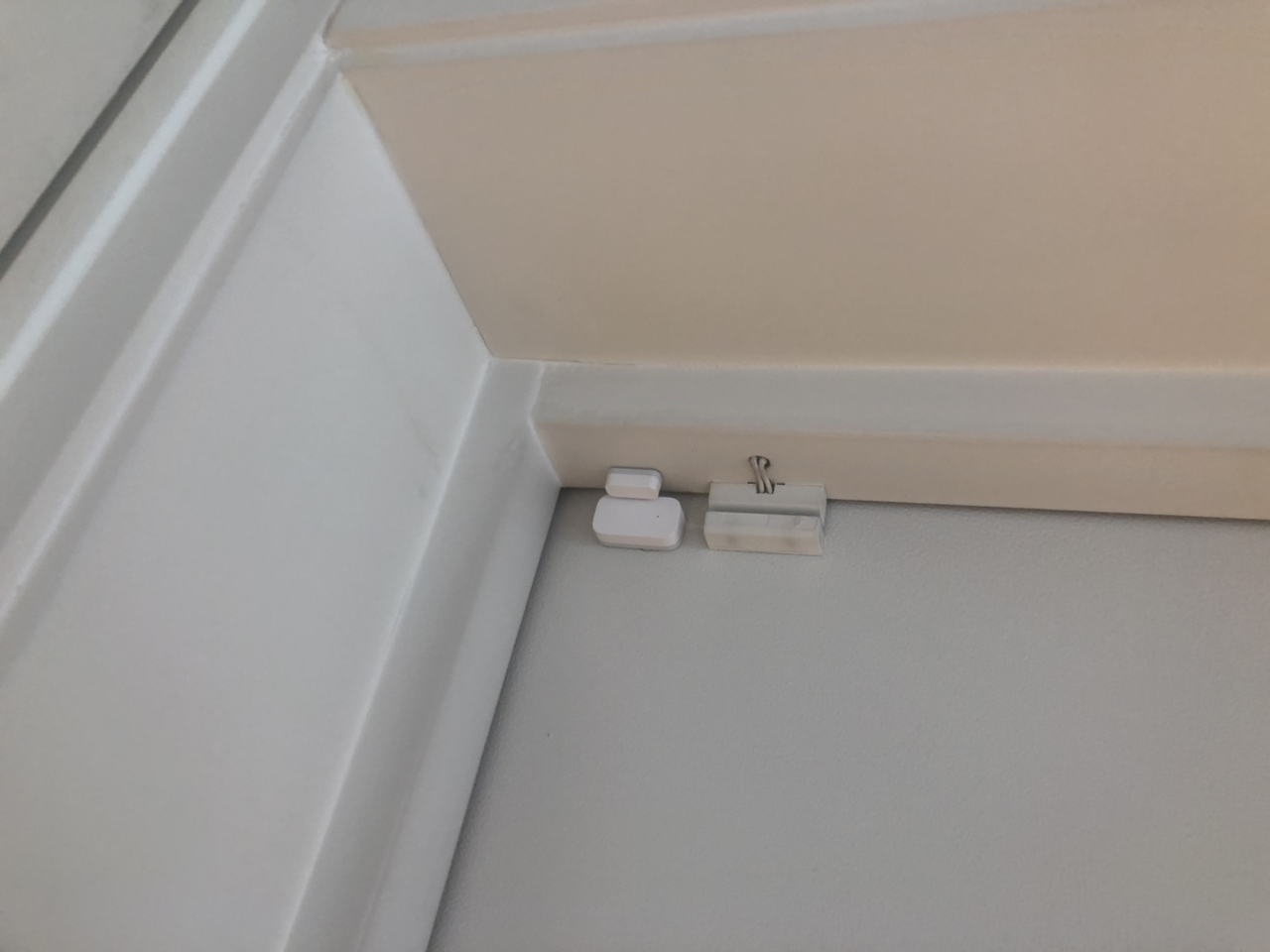 암수가 한 쌍인데, 저렇게 붙어있다가 떨어지면, 열림과 닫힘을 감지한다. 나는 현관문에 1개, 베란다 문에 1개를 붙여두었다.