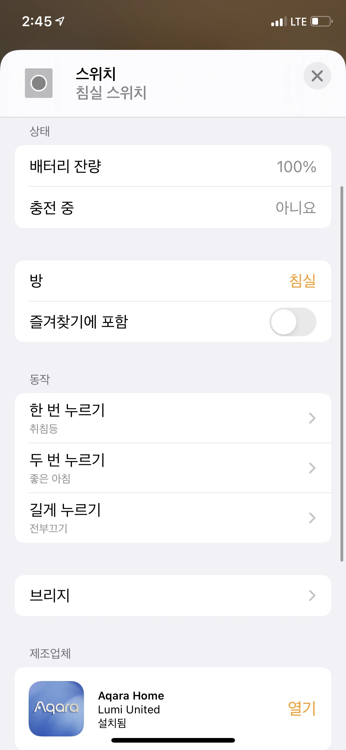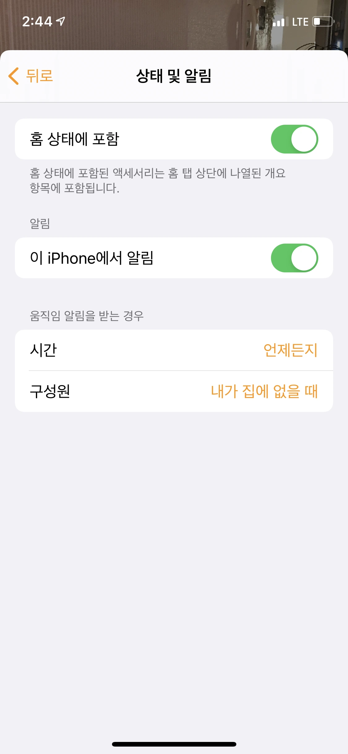이 설정도 아카라 앱에서 할 수도 있지만, 애플 홈에서도 바로 설정 가능하다.