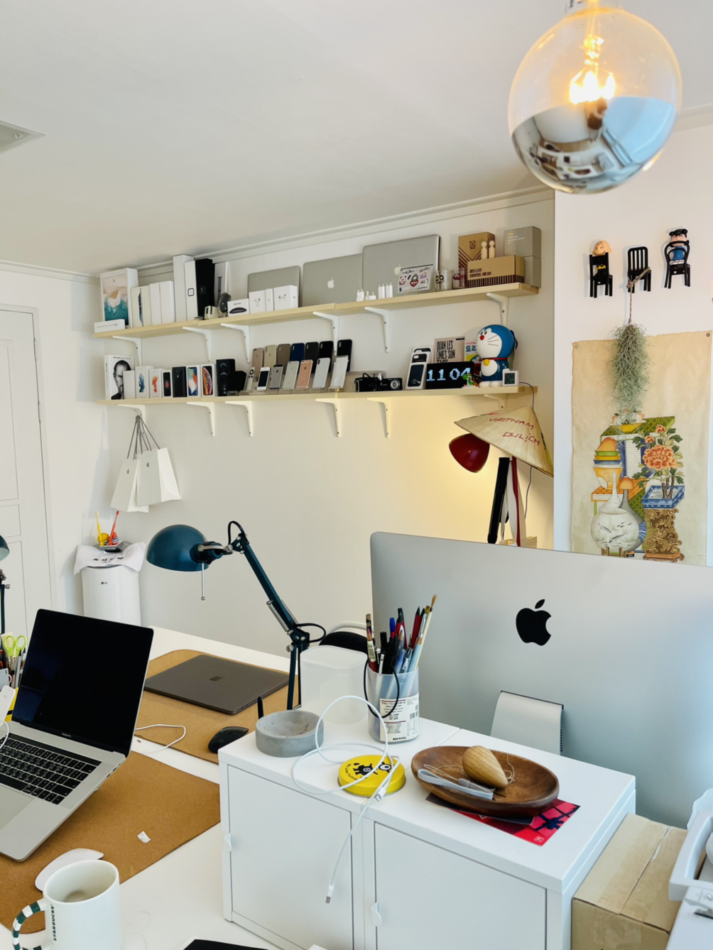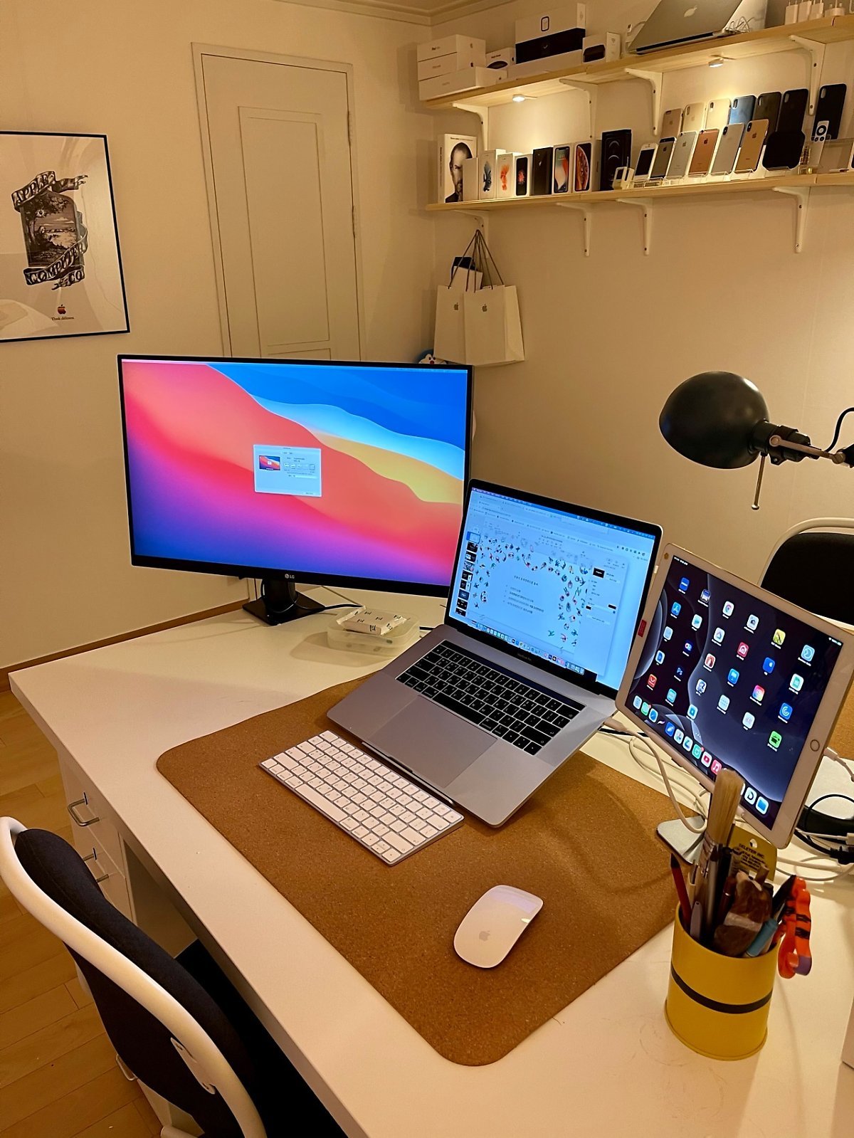 왠지 내가 재택 하면서 머무르는 이 방을 특별히 만들고 싶은 생각이 들었다. 원래 서재방 자체가 카페같이 보이는 오피스 콘셉트이었는데, 욕심이 과해서 양재동에서 들렀던 브라운 제품과 애플 제품을 아카이빙 한 콘셉트를 나도 한번 따라 해보고 싶은 몹쓸 유혹이 찾아왔다. 유혹이 찾아왔다면 실행하라!!!!